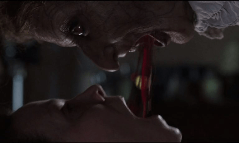 An important way in identifying the abject and grotesque is through the use of dialogue, ‘exaggeration, hyperbolism and excessiveness are generally considered fundamental attributes of the grotesque style’ (Bakhtin, 1984, p.303). The grotesque body ‘ceases to be itself’ meaning it line between the body and the world vanishes, allowing ‘one to be with the other with the surrounding objects’ (Bakhtin, 1984). In a grotesque body, physical features such as body party become disgusting and the body is unable to perform everyday acts such as: eating, drinking or pregnancy. The grotesque body is never complete, it is constantly deteriorating, ‘it continually builds and creates another body’ (Bakhtin, 1984).